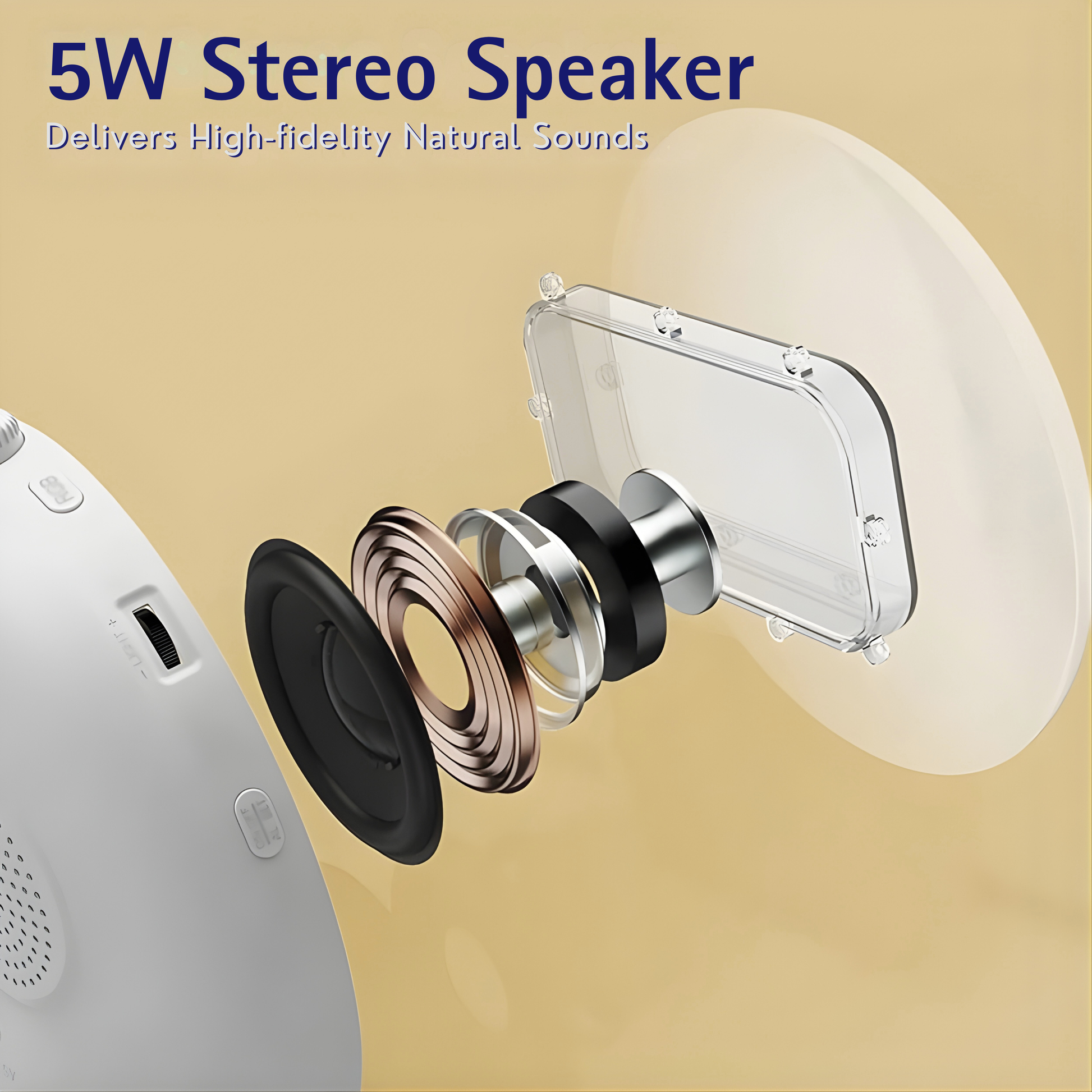 Premium Bluetooth Speaker: A 5W High-Fidelity speaker that lets you stream your favourite morning playlists or evening meditations with crystal clarity.